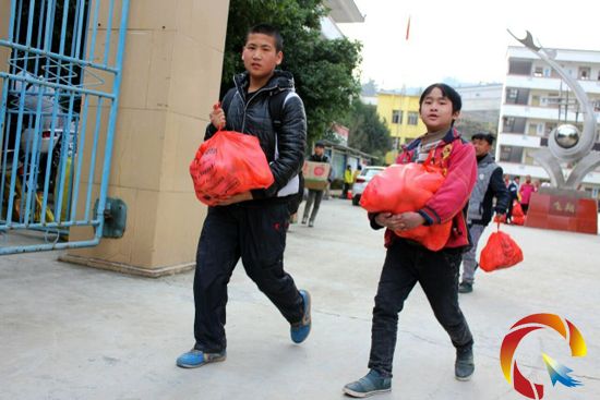 本網(wǎng)訊 1月16日下午,榕江縣樂(lè)里中學(xué)的不少學(xué)生提著一箱蘋(píng)果和行李高高興興地走出校門(mén),后各自回家。據(jù)悉,這蘋(píng)果是學(xué)校讓他們帶回家孝敬老人的。
