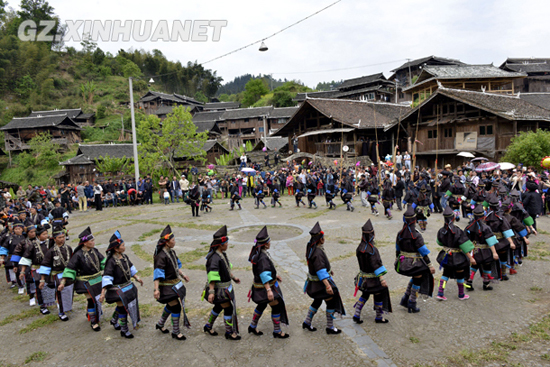 4月21日,貴州省榕江縣兩汪鄉(xiāng)空申苗寨群眾在跳蘆笙舞。新華社發(fā)(王炳真 攝)