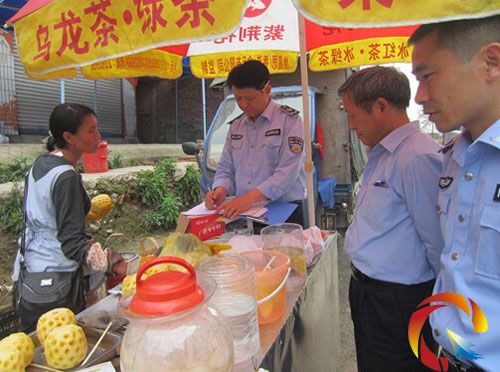執法人員整治占道經營水果商販