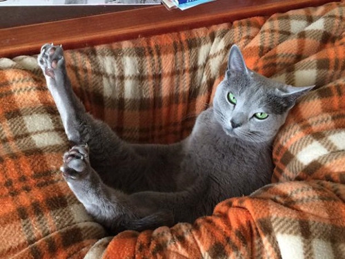 照片中,只見一只灰色的貓咪以接近四腳朝天的姿勢“坐”在柔軟的臥榻之上,仿佛十分享受地沉浸在自己的那一塊小空間里。見到主人過來拍照,小家伙沒有絲毫羞怯,反倒用慵懶銷魂的眼神望向鏡頭,享受著這種“坐姿”帶給自己的快樂。