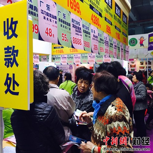 旅交會(huì)吸引了大批老年消費(fèi)者。中新網(wǎng)財(cái)經(jīng)頻道看到,在金馬旅行社和康輝旅行社前擠滿了老年消費(fèi)者,不少人當(dāng)場(chǎng)簽訂合同。金馬旅行社主打的是境外游,韓國出境游價(jià)格在3000元左右,俄羅斯價(jià)格在5000元左右。72歲的許大爺表示想去俄羅斯旅游,“退休以后沒事情做,想去沒有去過的地方看看,目前身體狀況也還可以,想在展覽會(huì)上挑一個(gè)合適的報(bào)名。”