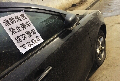 對于車身上張貼的有“消防通道禁止停車這次警告下次拖車”字樣的紙條,車主們說他們將車停在路兩側,絕對沒有占用消防通道,也沒見路上劃出什么消防通道,剩余的路面并排過兩輛車綽綽有余。