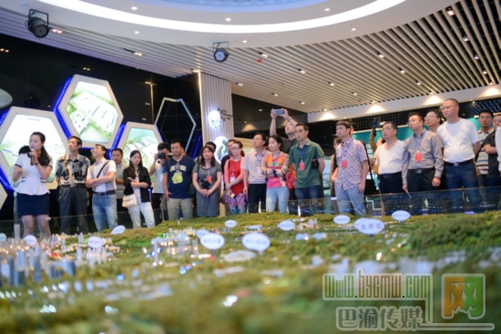 泛成渝網盟采訪團在涪陵新區規劃沙盤前參觀。記者 黃河 攝