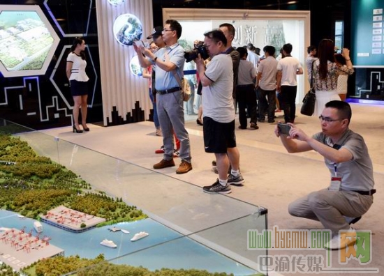 泛成渝網盟采訪團成員拍攝新區沙盤。記者 李輝 攝