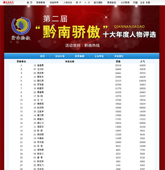 第二屆“黔南驕傲”十大年度人物評選活動網絡投票結果出爐
