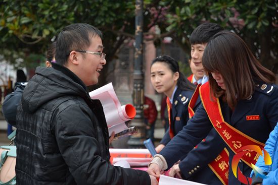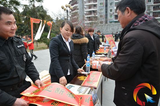 地稅局的工作人員正在派送春聯