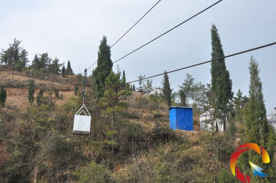 接著,她扭動開關,索道動起來了,帶著纜鉤和鉤下的飯菜,往坡上的蒙古包而去。