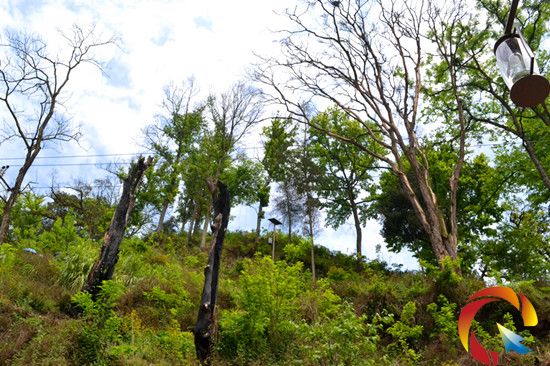 走進寨子,依然能感受到青山環繞、古樹掩映的特殊氣息,只是還有幾根沒被完全燒毀的樹干站立在新房上方,俯視著,像在欣賞什么!