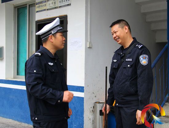 交警宣傳民警將查獲的“槍支”移交給當地派出所