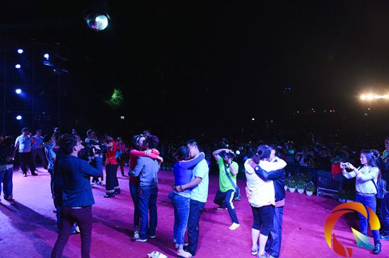 晚上8點,“啤酒狂歡晚會”之接吻大賽在高過河景區激情上演。據了解,現場共有200對情侶參加活動。