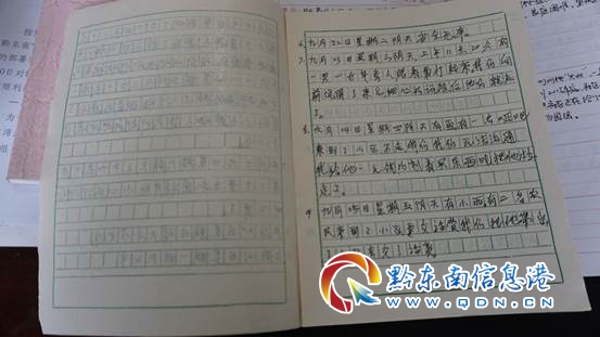 說到社區黨建工作的開展,沈釗榮說更是離不開老黨員和社區中的熱心腸的志愿者們的支持與幫助。采訪中,我們有幸遇到了74歲的退休鐵路老工人姜殿祥,姜老是一名老黨員,是凱里市優秀志愿者,更是社區中的優秀治安積極分子,他也有自己的“治安維持記錄本”,認真記錄著自己的工作情況,提到清水江社區的黨建工作姜老激動地稱贊起來“沈書記對工作很負責,有什么事,有什么難處跟她講,她都能去幫助一下,派人去處理一下。我自己維持治安時哪天有什么事都記錄,他們這個民情日記真是好啊!”