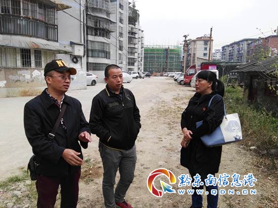 (沈釗榮向騰飛園小區業主委員會負責人了解圍墻修建進度)