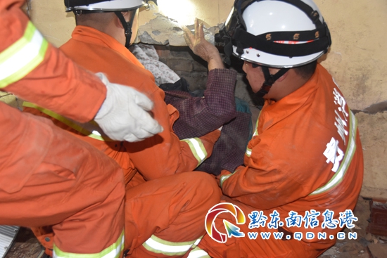 本網(wǎng)訊 4月20日7時(shí)40分,位于天柱縣第二中學(xué)后門的兩棟樓房連接處,有一名老人被卡在墻縫中,情況危急。接到報(bào)警后,當(dāng)?shù)叵啦块T立即趕赴現(xiàn)場救援。