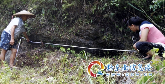 當(dāng)?shù)卮迕駵y(cè)量涼風(fēng)洞洞口。楊政權(quán) 攝