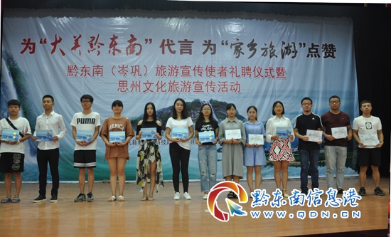 活動中,該縣還為參加活動的大學生播放了黔東南和岑鞏的宣傳片,介紹了思州文化和旅游資源,為黔東南(岑鞏)旅游宣傳使者頒發了聘書,建立了微信群“黔東南州(岑鞏)旅游宣傳使者群”,倡導他們積極為“大美黔東南•魅力中國城”宣傳,積極地講好古思州今岑鞏美好故事,助力“大美黔東南”問鼎城市之巔。