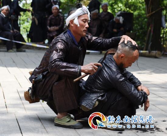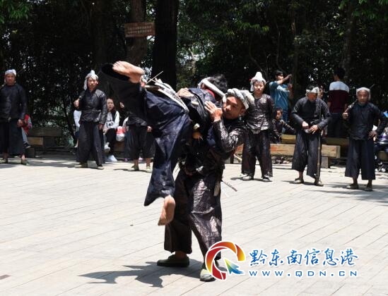 當日,正是五一小長假的第一天,在岜沙旅游景區內的鐮刀剃頭、苗族婚俗禮儀、蘆笙舞、岜沙漢等民俗節目活動展演,令游客興致勃勃,讓游客流連忘返。(龍夢前)
