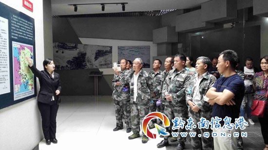從江縣光榮院療養(yǎng)退伍老兵細(xì)心聽取解說員講解紅軍故事