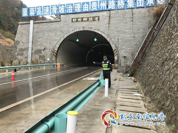 路政員在隧道入口示意過往車輛減速慢行
