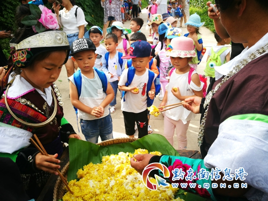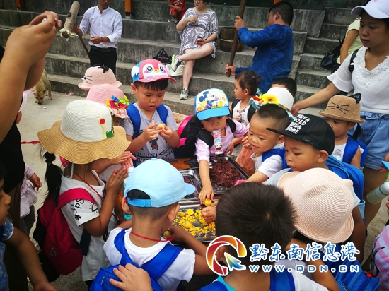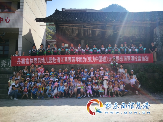 據了解,此行到清江苗寨游學團為4-6歲幼兒園的60名小朋友,主要一是學習農耕文化,體驗農村生活,豐富第二課堂載體,提高孩子對生活的認識和社會實踐能力;二是以身踐行,帶頭倡導為《魅力中國城》大美黔東南競演投票鼓勁加油,很好地展現丹寨青少年風采魅力。