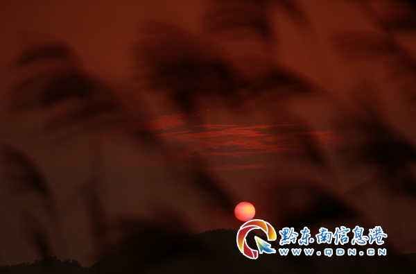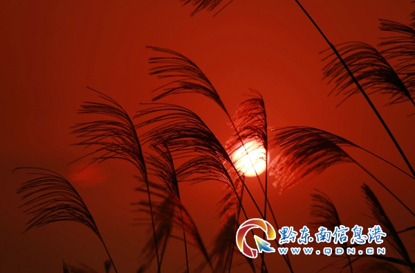 本網訊 深秋時節,在貴州省丹寨縣興仁鎮,秋的夕陽輝灑在山野中的野生蘆葦上,蘆葦在秋風中搖曳,一輪紅日漸漸西沉,為深秋的苗嶺山區描繪了一幅美麗畫卷。(黃曉海)