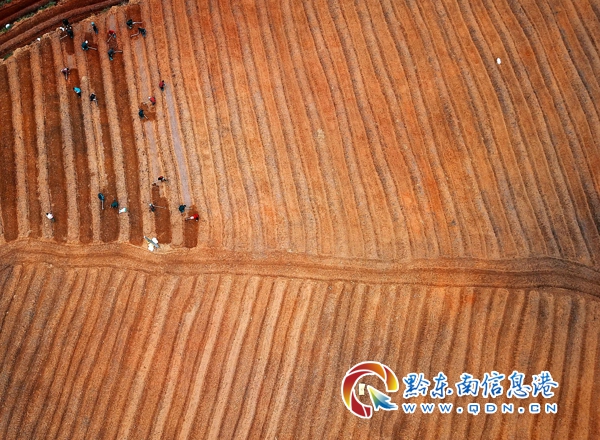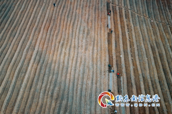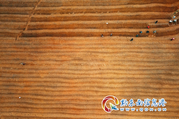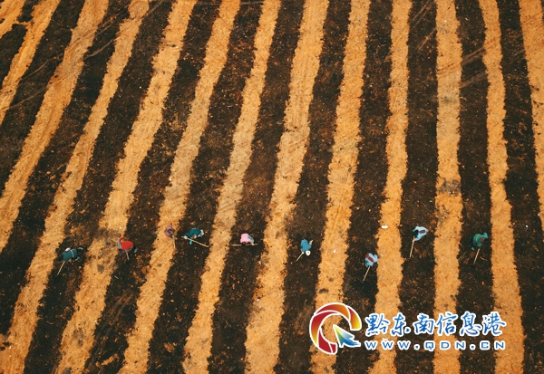 本網(wǎng)訊 初冬時節(jié),黔東南苗族侗族自治州丹寨縣的農(nóng)民搶抓農(nóng)時,進行萬畝藍(lán)莓種植前的土地耕作,縱橫交錯的黃土地與農(nóng)民勞作的身影仿似一幅美麗的版畫。近年來,丹寨縣在發(fā)展脫貧產(chǎn)業(yè)“秋季攻勢”過程中,根據(jù)貴州山區(qū)土壤、氣候的特點,推廣藍(lán)莓和中藥材等作物規(guī)模化種植,掀起秋冬季耕作的熱潮。(黃曉海)