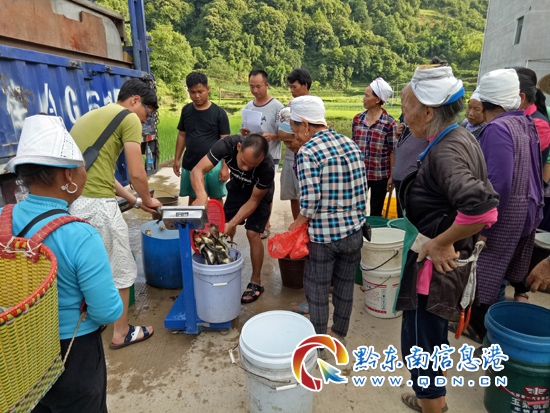 6月7日,在谷隴鎮山坪村稻田養魚示范基地旁人頭攢動,工作人員正有序將魚苗發放到該村貧困群眾手中。