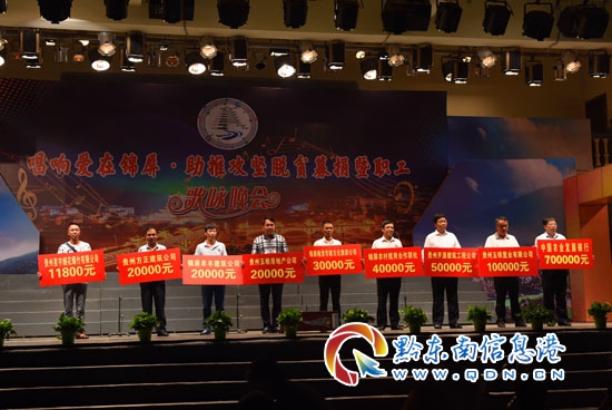 本網訊 日前,在錦屏縣“唱響愛在錦屏,助推攻堅脫貧”募捐暨職工歌詠晚會上,來自錦屏縣玉錦置業有限公司、貴州開源建筑工程有限公司、錦屏縣華旅文化旅游發展有限公司等17家非公企業、湖南商會以及非公個人共為本次活動現場捐款385400元;彰顯了非公經濟人士致富思源,主動擔當的社會責任,受到社會的高度評價。(吳子科 李斌)