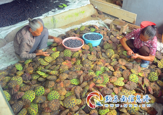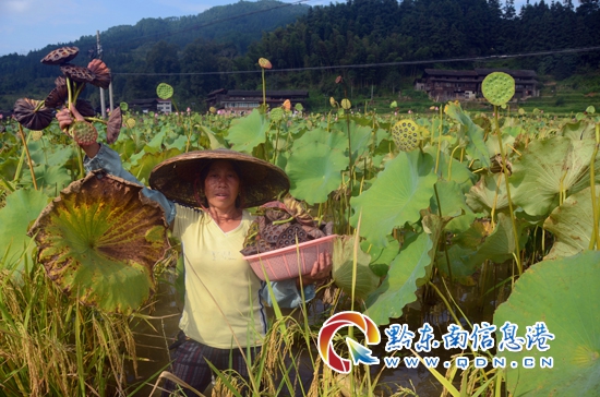 本網訊 9月8日,錦屏縣高寨村坪寨組村民正在采收蓮子。今年該縣鐘靈鄉扶貧辦將4000棵太空蓮種苗免費發給貧困戶楊昌亮試種,同時簽訂了回收合同。有了政府的扶持,他又向種植太空蓮的水域里投放了200多斤鯉魚;今秋蓮魚增產增收,走上了脫貧致富奔小康的快車道。(李斌)