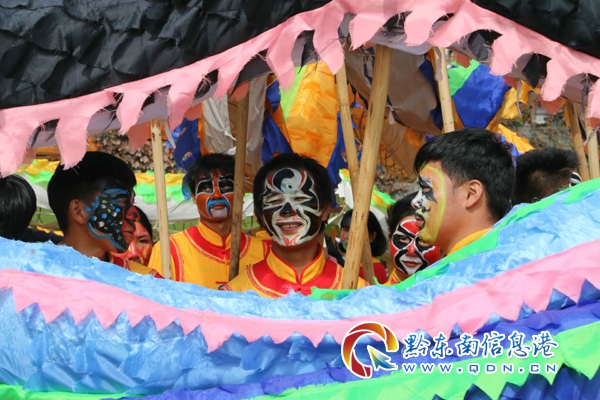開幕式當天,隆里古城花臉龍民俗文化游行展演,不僅有抬官人、蚌殼精、金錢棍、花臉龍、漢戲、軍屯文化等展演;還有由明朝武士方陣,漢戲演員方陣,金錢棍演員方陣,蚌殼精演員方陣和五條龍組成的花臉龍方陣100余人,浩浩蕩蕩從文化活動廣場出發(fā),進行舞龍民俗文化單演游行。