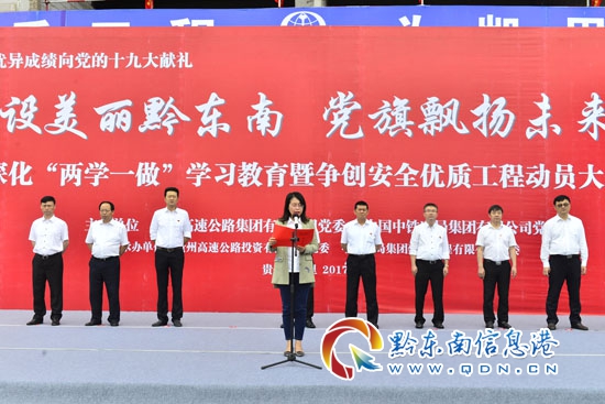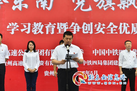 本網訊 (何飛 李愛林 記者 楊懿)2017年5月23日,由貴州高速公路集團有限公司黨委和中國中鐵四局集團有限公司黨委共同主辦,貴州高速公路投資有限公司黨委和中鐵四局集團建筑工程有限公司黨委承辦的“建設美麗黔東南、黨旗飄揚未來城”深化“兩學一做”學習教育暨爭創安全優質工程動員大會在凱里“未來城”城市之門項目工地隆重舉行,貴州高速公路集團有限公司集團公司黨委委員、紀委書記石磊,凱里市委副書記朱漢琴,貴州高速公路投資有限公司董事長、總經理陳虎,中國中鐵四局集團有限公司黨委書記、董事長張河川、黨委副書記、紀委書記袁敏以及相關部門負責人、參建單位員工代表和農民工代表共190余人參加動員大會。