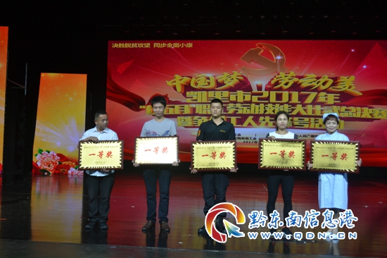 本網(wǎng)訊(實習(xí)記者 田應(yīng)龍 攝影報道)5月23日下午,“中國夢,勞動美”凱里市2017年“紅五月”職工勞動技能大比武總決賽在民族文化宮落幕。通過精彩角逐,有6家單位獲得一等獎;另外還頒發(fā)了12個2016年度“工人先鋒號”榮譽稱號的先進集體,11個全市各級勞動模范、先進工作者,48個2016年度高級專業(yè)技術(shù)職稱或高級技能職稱。