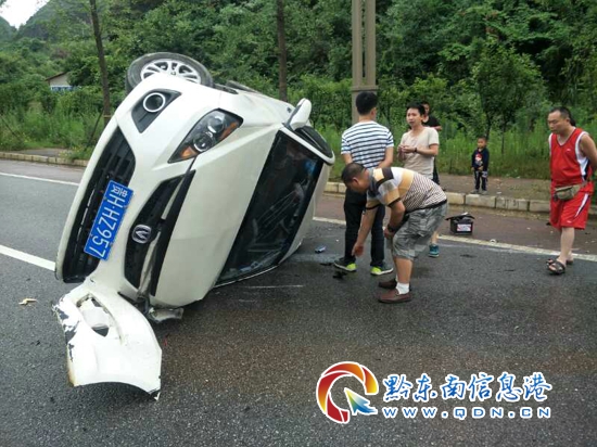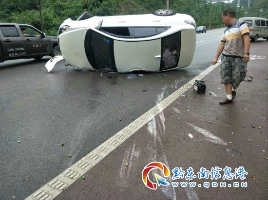 據了解,25日上午11時50分許,一輛白色轎車從凱里市區駛往開發區,由于車速過快,車輛失去控制,在凱里市濱河路(濱江山莊東北)處拐彎時,車輛側翻,車輛在翻滾的過程中撞斷了路邊剛種的白楊樹,幸運的是,車上無一人受傷。