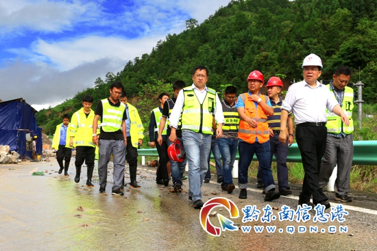 7月1日,在中國共產黨成立96周年當天,集團公司黨委書記、董事長任仁不忘初心、繼續走在汛期抗洪第一線,發揚黨員領導先鋒模范帶頭作用。集團公司招標辦主任吳鑫、營運管理中心黨委副書記、主任凌海峰、黨委委員、副主任譚竣,路網中心主任閆奇志、凱里營運管理中心領導班子及相關科室負責人陪同一線察看。