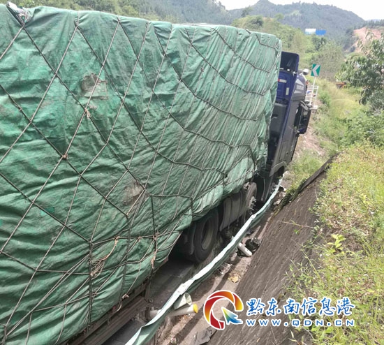 本網(wǎng)訊 8月8日中午,在凱里境內(nèi),一掛車司機(jī)因?yàn)榍胺绞鹿示徯校瑒x車不及時(shí),為避免更大損失,主動(dòng)撞向護(hù)欄,險(xiǎn)掉入路外高坎。