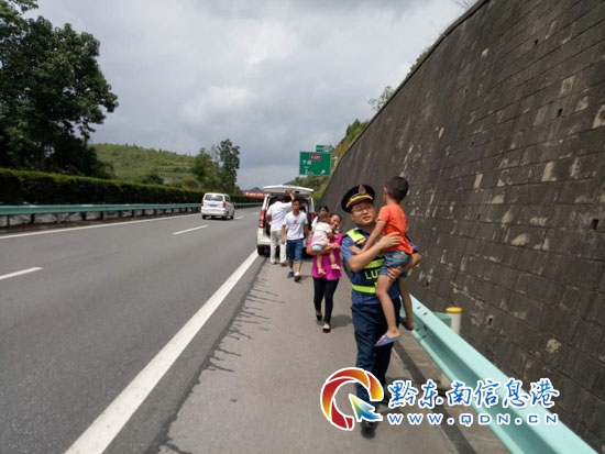 路政員得知原因后哭笑不得,路政員告知該車駕駛員在高速公路推車是禁止行為,一是因為高速公路車速很快,后面車輛很容易追尾造成人員傷亡;二是前面還有下坡路段和彎道,車速更快,后面車輛更不容易看清前方情況;三是一旦有涉路施工或其他情況使車道變窄,推著車輛通過極易引發追尾和造成交通擁堵。經過路政員的講解,該車駕駛員恍然大悟,意識到了自己的錯誤行為,愿意通過高速公路應急中隊把故障車拖出高速公路。路政員幫助車上人員抱著小孩站到護欄外,并撥打應急救援電話。