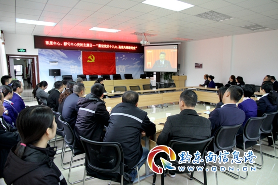 凱里中心與都勻中心與會黨員在凱里南站認真觀看十九大開幕式