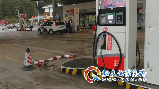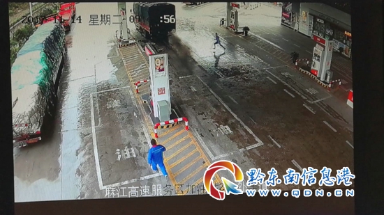 2017年11月14日中午,黔東南州公安局交警支隊高速一大隊值班民警接到報警電話稱,在滬昆高速貴陽往凱里方向的麻江服務區,有一輛湘D號牌的大貨車撞壞加油站防護設施后,駕車逃跑,請求交警出警處理。