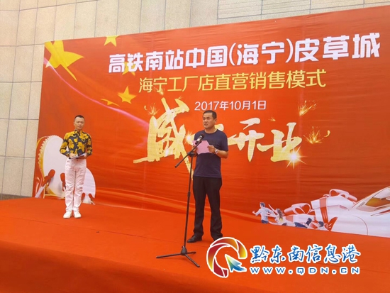 早上11:00,慶典活動正式開始。高鐵南站商業廣場項目總經理龔彪為海寧皮草城送上開業賀詞,祝賀海寧皮草城開業大吉并預祝海寧在黔東南這片沃土上收獲碩果。
