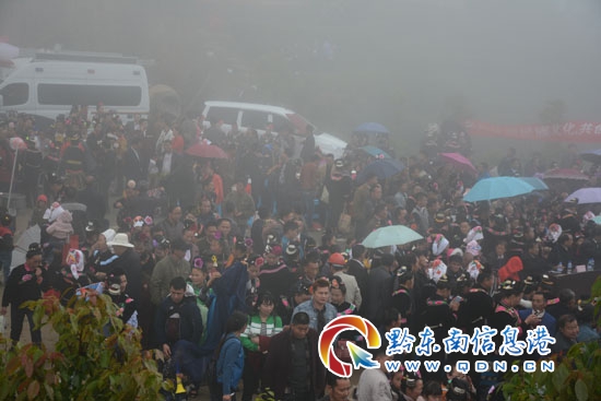 本網訊 5月7日“甲午”日是雷山縣大塘鎮一年一度的“九十九”爬坡節。這天,雖然天公不作美,但仍有三萬余苗族同胞齊聚海撥1200多米“九十九”(地名)歡慶“爬坡節”活動,現場人山人海熱鬧非凡。