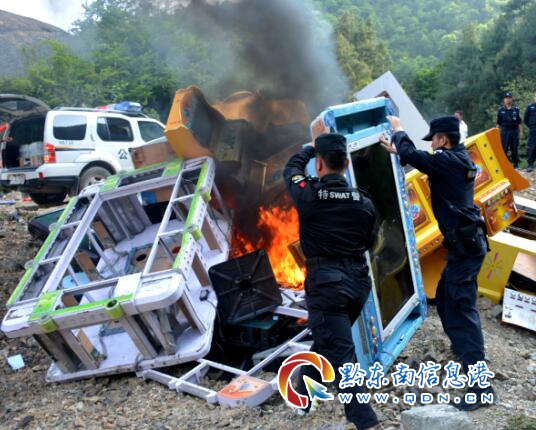 本網(wǎng)訊 為震懾賭博違法犯罪,教育廣大人民群眾自覺遠離賭博危害,5月10日,雷山縣公安局特巡警大隊、丹江派出所組織開展集中公開銷毀賭博工具活動,將今年以來在打擊涉賭違法犯罪中繳獲的賭博工具鯊魚機、老虎機等公開銷毀,此次活動共集中銷毀各類賭博機27臺、麻將桌35臺等賭博工具。