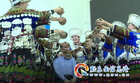 來賓體驗苗家敬酒禮儀“高山流水”