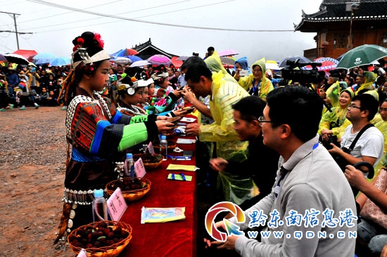 公統(tǒng)村中裙苗少女給來賓敬酒