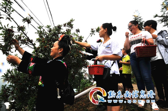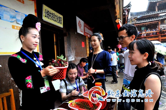 苗家少女在向來賓推介公統(tǒng)楊梅