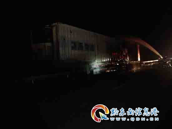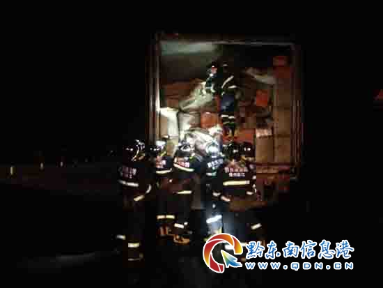 本網訊 7月22日21時44分,位于麻江縣往貴陽方向高速路上一輛滿載物流快遞的貨車發生自燃,價值50余萬元的快遞岌岌可危,請求消防官兵前往救援。接到報警后,消防官兵立即趕赴現場進行救援。