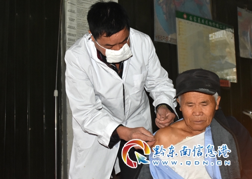 “黃醫(yī)生,我的右肩膀痛得厲害,請你看看嘛!”剛從施秉縣施洞鄉(xiāng)來的楊光明老人請求道。