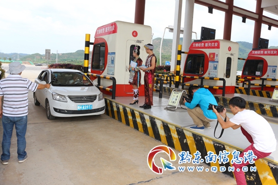 據攝制組人員介紹,這次攝制組深入凱里南收費站拍攝,主要是為了做好“貴州生態日”宣傳片的素材收集工作,凱里南收費站是這個宣傳片的第三站,選擇走進凱里南站也是被黔東南苗侗文化的魅力所吸引,特別是在重大節日期間,收費站員工身著民族服飾上崗,給司乘人員留下了深刻的印象,收費員一次次的文明服務,就像是在傳遞黔東南一張張美麗的宣傳名片,同時也是傳遞貴州高速文明形象的好聲音。