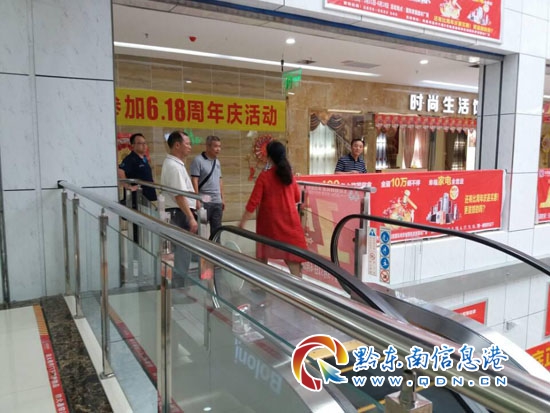本網訊 2017年4月28日黔東南州特檢所對凱里某商城電梯進行定期檢驗,在用的18臺自動扶梯存在出入口尺寸以及與建筑物障礙物距離不符合安全技術規范要求、梯級踏板與圍裙板間隙不符合要求、沒有安裝視頻監控系統,定期檢驗不合格。凱里市市場監管局高度重視,立即組織特種設備安全監察人員開展檢查,依法下達《特種設備安全監察指令書》,責令停止使用年檢不合格的自動扶梯并進行整改申請復檢。
