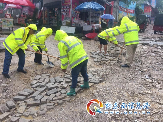 6月30日一大早,正在進(jìn)行路面施工的凱里市文昌路口路基被大雨沖得坑坑洼洼,交通受阻。該路段是通往五中片區(qū)和凱里郵政投遞局的必經(jīng)之地,受此影響出行的居民上千戶。得知情況后,投遞班班長王旭與十幾名投遞員,拿起鐵鍬、十字鎬、釘耙,冒雨來到現(xiàn)場搶修。在郵政員工的帶動下,附近居民也紛紛加入搶修隊伍。經(jīng)過一個多小時的施工,路面坑洼基本填平,交通恢復(fù),讓該片區(qū)居民得以正常出行,當(dāng)天的黨報黨刊和郵件也及時送到用戶了手里。