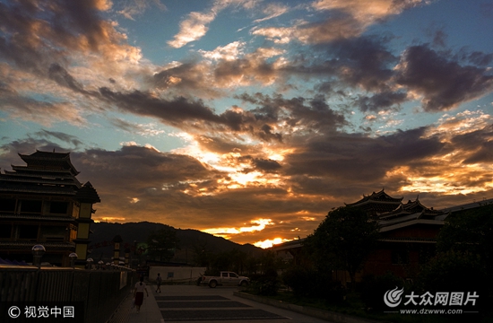 2017年7月4日,黔東南,一場降雨過后,從江縣天空出現(xiàn)漂亮的晚霞。(吳德軍 攝影報道)