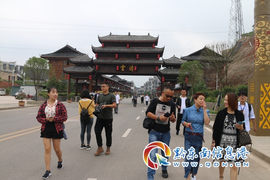根據行程的安排,今天一大早,簡單的吃完早餐后,各路名嘴一行便從雷山乘車前往歷史悠久的舊州古鎮。抵達古鎮后,在專業導游的帶領下,大家緩緩地進入了舊州古鎮,先后參觀了模擬古戰場、西上古街、仁壽宮、天后宮、天主教堂等歷史遺跡。